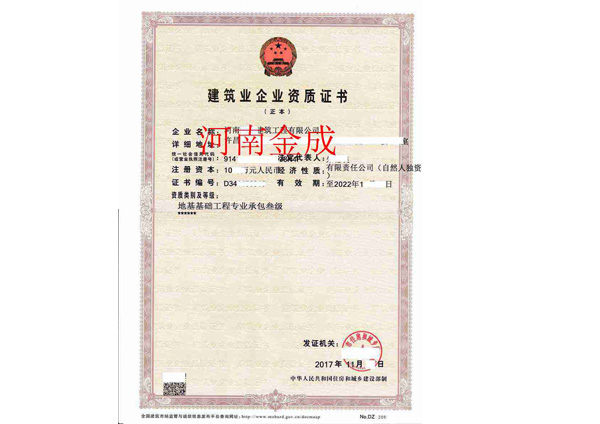 • 建筑業企業資質證書副